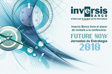 En un entorno tan poco definido, muchos inversores se ven faltos de ideas o, por lo menos, de seguridad para lanzarse al mercado. Es en estos momentos donde más se valor las recomendaciones de los expertos y sus visión sobre la evolución de la economía en los próximos meses. En esto consiste precisamente el evento Future Now de Inversis Banco, una serie de c onferencias sobre estrategias de inversión para 2010 y en las que expertos de la entidad y colaboradores tratan de anticipar el comportamiento de los mercados y ofrecer ideas par rentabilizar nuestro capital este curso.